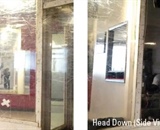 The blue tape across the visor in these photos illustrates proper head positioning in various orientations: