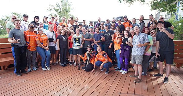 Connie Krusi celebrates her award with the community at Skydive Spaceland-San Marcos in Fentress, Texas. Photo by Yoshizo Ishihara.