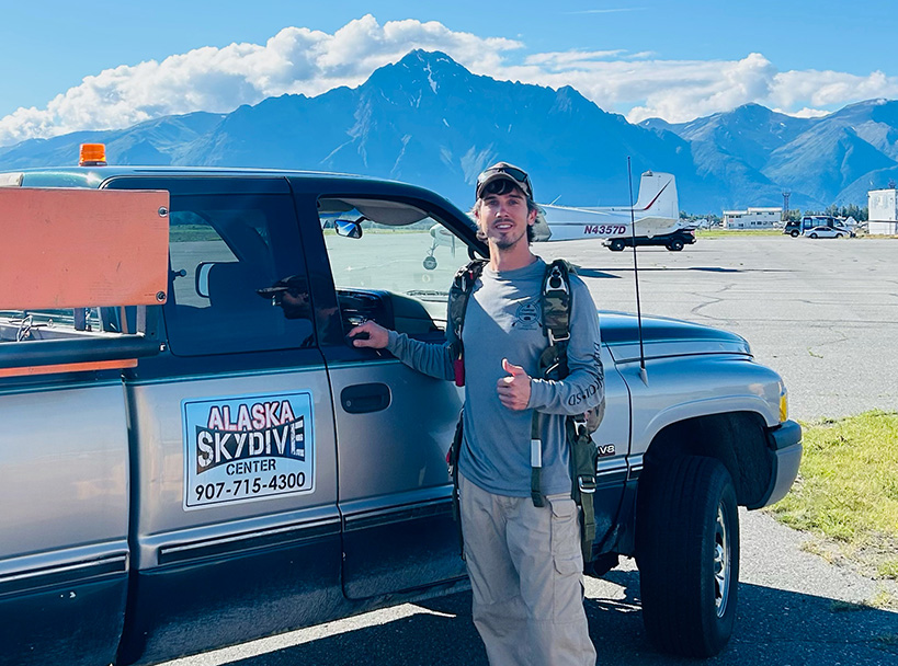 Preston Clark poses at Alaska Skydive Center in Palmer, his favorite jump location.