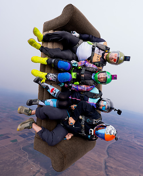 At its core, Guardians of the Drop was a playground for highly skilled adults—a chance to combine advanced flying with pure creativity, problem-solving and the shared thrill of embracing the unknown. Every jump brought something new: unusual objects, unique visual concepts and evolving goals based on what participants wanted to create in the sky. Sometimes flyers aimed for freefly speeds; other times precise speed didn’t matter. The atmosphere encouraged constant curiosity: What unusual thing can we safely make fall next?
