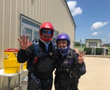 By my 60th birthday in August 2019, I had reached my goal weight, so my wife Joann and I decided to try the skydiving thing. I just wanted to get familiar enough to save my life if the aerobatic aircraft I was flying decided to lose a wing or something, but Jo was curious and does not like being outdone in any way. We did the obligatory tandems on a Saturday early in September 2019. I had to make only one tandem, because they gave me credit for my AFF 1 jump almost 11 years earlier. Jo hated the first tandem because the instructor spiraled down too quickly, making her dizzy and nauseous, but after a short rest and a new instructor, the second jump was gentle and magical. She was hooked. The AFF class started the next morning, on Sunday, and we haven’t looked back since. We spent the next five weekends at the DZ in training. I received my A license in November. It took Joann (the precise accountant) a little longer, but she did it! I never thought she would take it that far. We both now have our own brand-new matching jumpsuits and rigs.