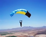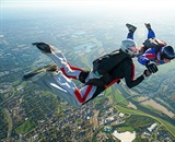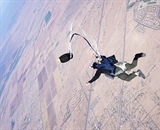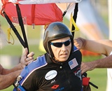 Double amputee Harry Shaw makes a tandem skydive with Stokes over Skydive Spaceland Houston in Rosharon, Texas, in 2010. Photo by Alex O'Connor.