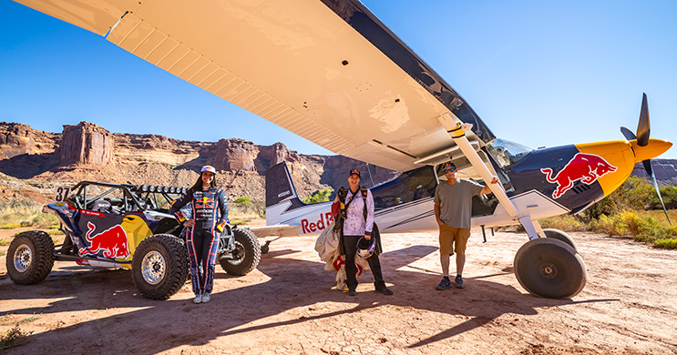 Decades later, as a Red Bull Air Force skydiver, Chmelecki decided to bring the scene from the video to life in her own way. To pull it off, she called 23-year-old Mia Chapman, Red Bull’s only U.S. female off-road pro driver. Together they shaped the idea into something real: a mix of aviation, horsepower and freefall.