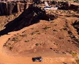 The team took a “crawl, walk, run” approach, performing site inspection at Mineral Bottom in Moab, Utah, in May; test runs in the Nevada desert in July; and the actual attempt in September. The location was perfect: a long, straight stretch of road leading to a 1,000-foot-deep canyon with switchbacks to the valley floor and a dirt runway nearby for quick turnarounds. Red cliffs, the Green River, endless sky—it looked like a movie set that nature built.