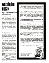 In her letter to members from the October 1977 issue, MacKenzie explains some of the benefits of moving USPA Headquarters to Washington D.C.: