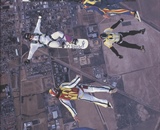 Craig O'Brien / Thursday, June 1, 2000 / Categories: Featured Photos, Covers June 2000 Cover Photographer Craig O'Brien took this shot of world-champion female skysurfer Tanya Garcia-O'Brien leading a tracking dive on her skyboard over Perris Valley Skydiving in California. The other trackers are (top to bottom) Billy Calhoun IV, Mike Ortiz, Eli Thompson and Jeff Calesa. Print 3970 Tags: June 2000