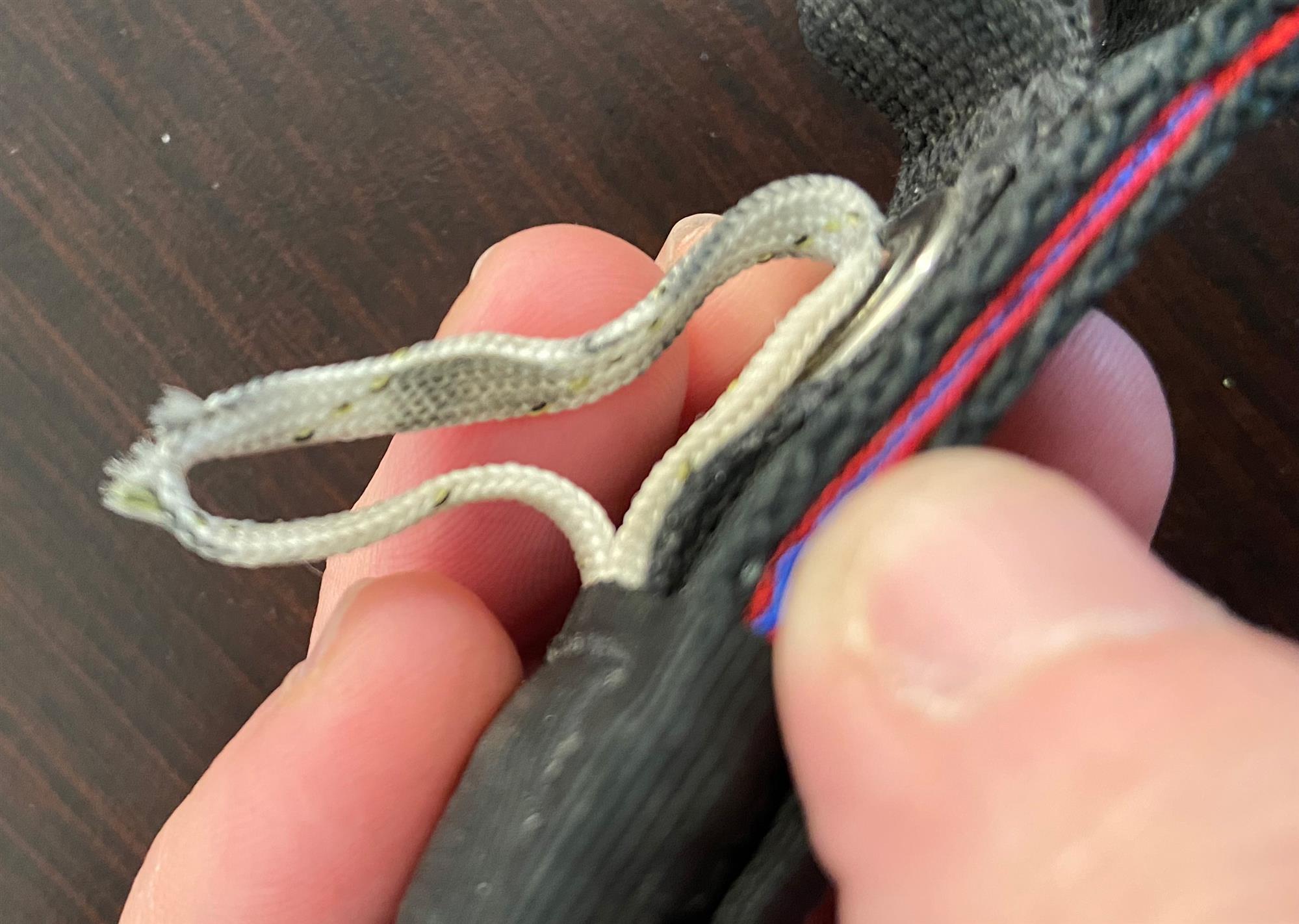 USPA Staff / Thursday, May 5, 2022 / Categories: Safety & Training, Keep An Eye Out Keep an Eye Out | Retaining-Loop Wear A licensed jumper switching canopies noticed this wear to the retaining loop, the component of the 3-ring system on the risers that attaches the main canopy to the harness. The damage could have caused the retaining loop to break when the system was experiencing the highest load, such as during deployment or on a sharp turn. If it had broken, it would have released one riser, which would have been catastrophic if it had happened too close to the ground for the jumper to perform emergency procedures. This was probably not routine wear, since the risers were not very old. It’s most likely that the damage occurred during an event such as the container being packed on an abrasive surface or being dragged across the ground during a rough landing. This highlights the importance of thoroughly checking all components of the parachute system on a routine basis. Print 5812 Tags: May 2022