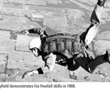 Mayfield, who now has 1,620 jumps (and about 50 BASE jumps) and is an AFF instructor, made more than 1,000 jumps under round canopies before switching to ram-air designs in 1977. Over the years, Mayfield became an accomplished formation skydiver and competitor. In 1971, he was on the first 8-way skydive in Texas, and in 1972, his team V-Mills Texans took the bronze in the first 10-way competition at Nationals. Mayfield was also a member of the teams who set the 36-way and 45-way world records for largest formation skydive.
